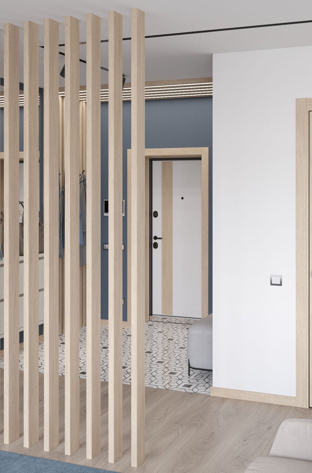 Посчитаем стоимость входной двери Декоративные рейка перегородка в цвете Сенди со внутренней отделкой в течение 15 минут!