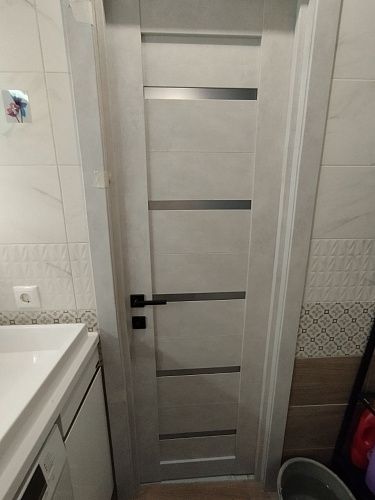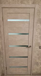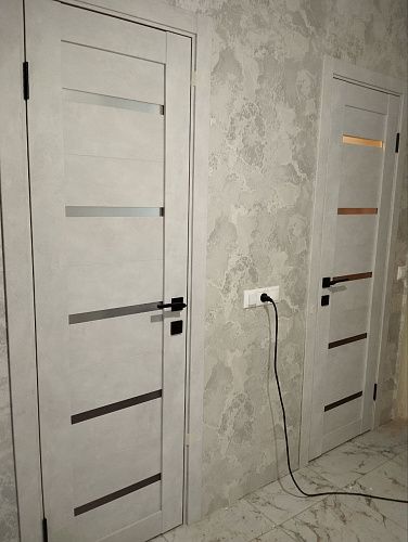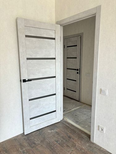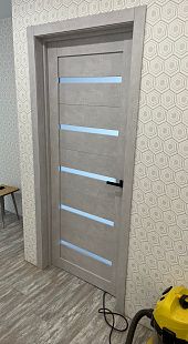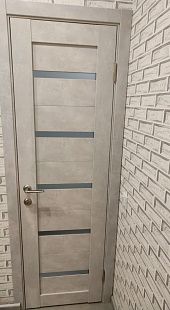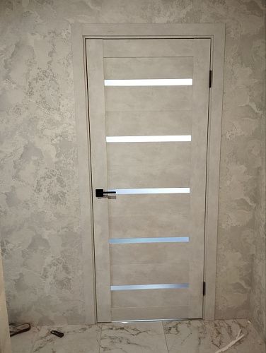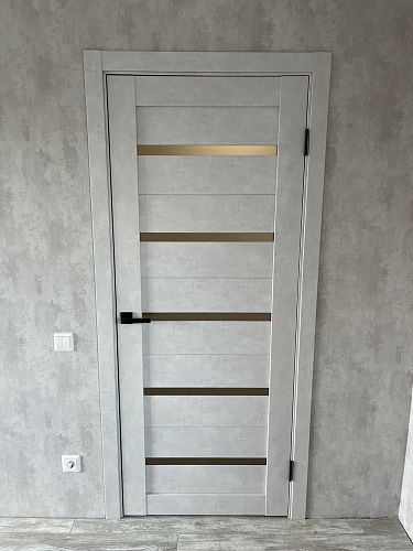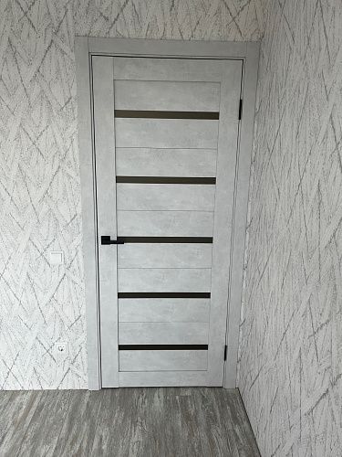 Дверь ПО Relief 1 Бетон лайт стекло графит из Экошпона COVERFLEX (Двери Нева) в с установкой и доставкой