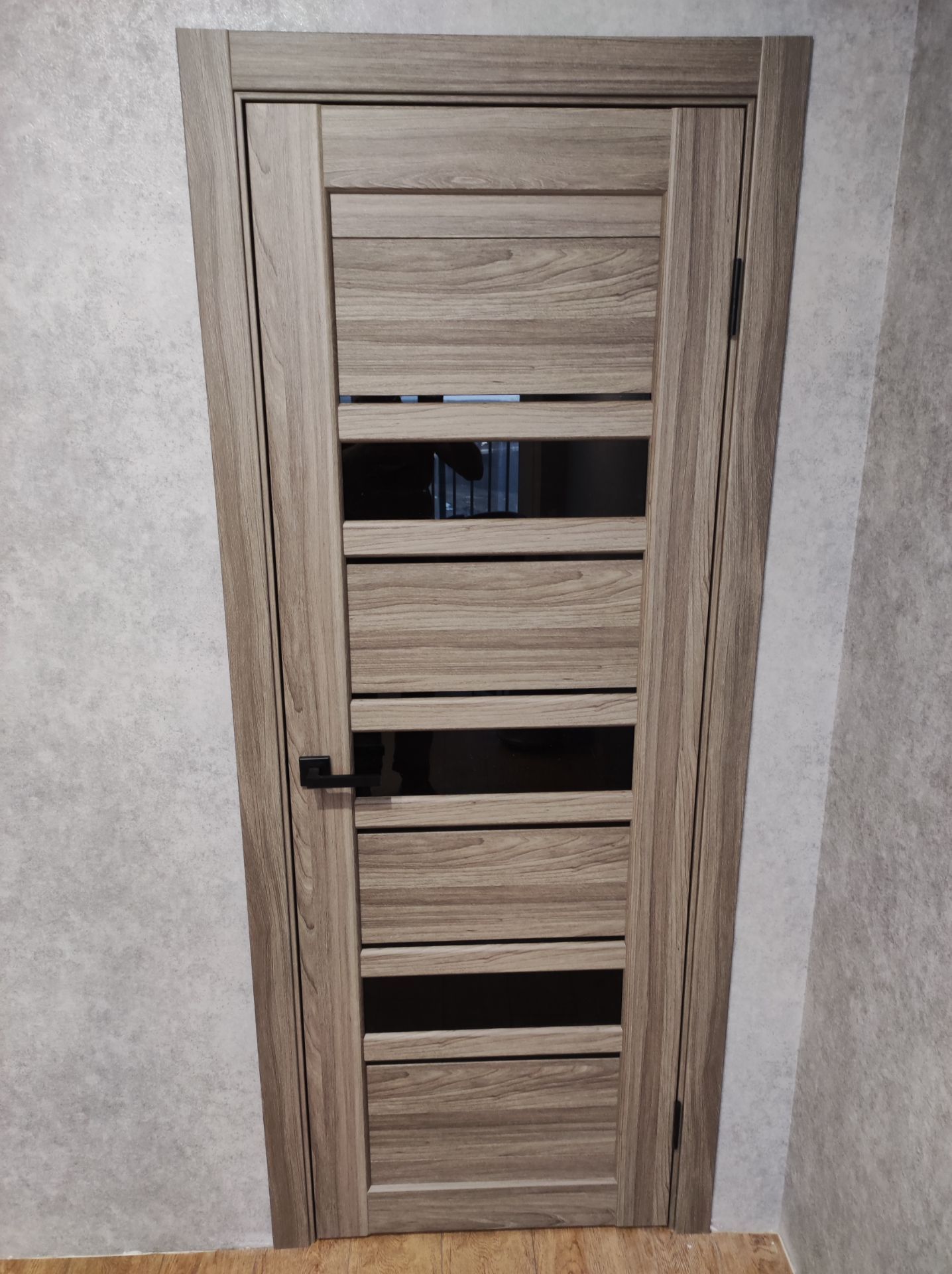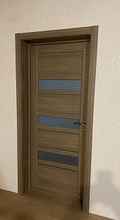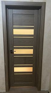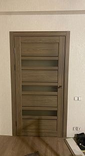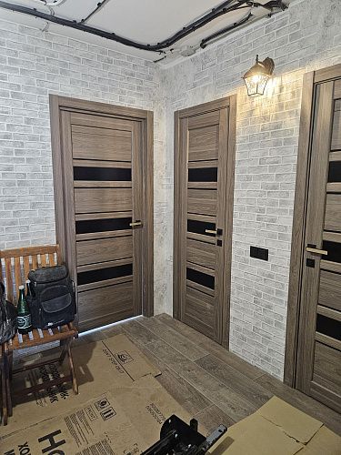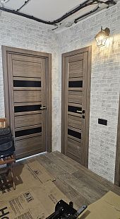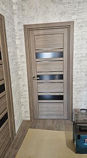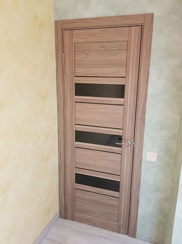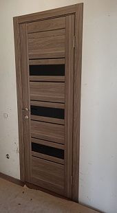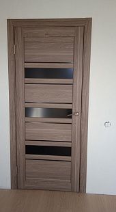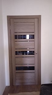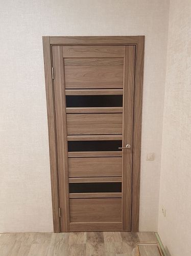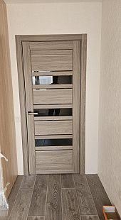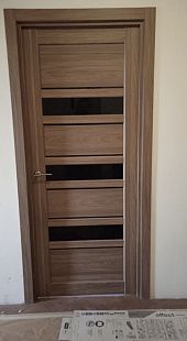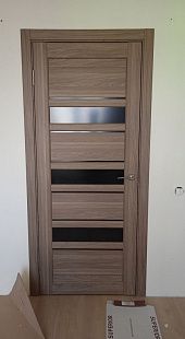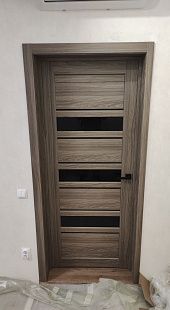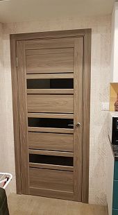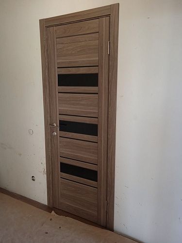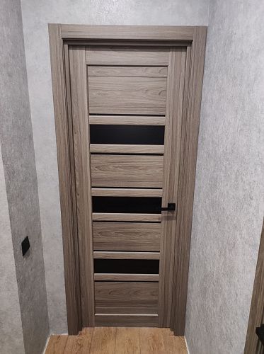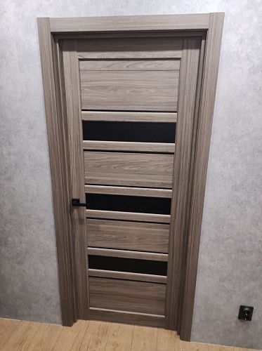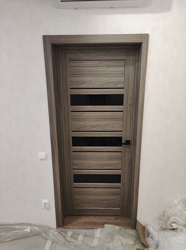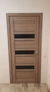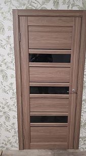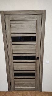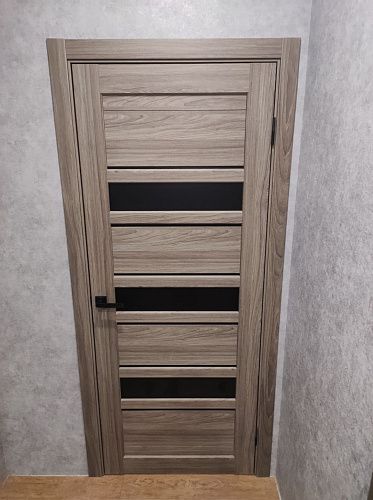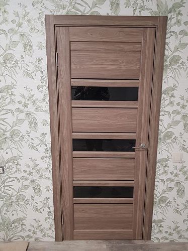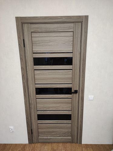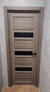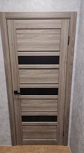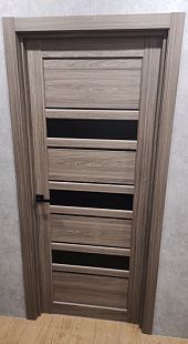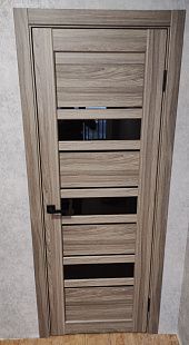 Дверь ПО Queen X3 Дуб тортора черное стекло из Экошпона COVERFLEX (Двери Нева) в с установкой и доставкой