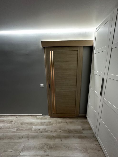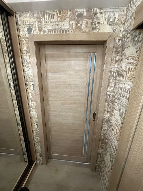 ПО QuLine 8-3 Беленый дуб стекло белое раздвижная с установкой "под ключ" в Петергофе